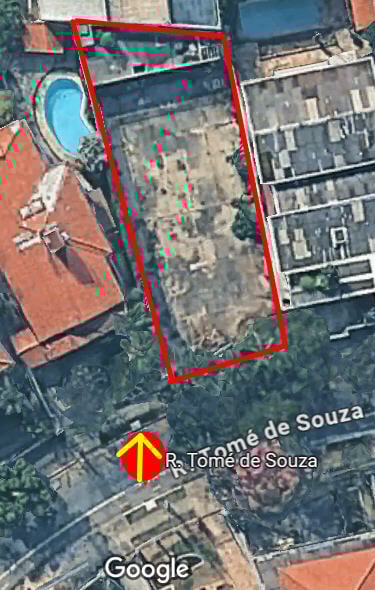 Lote abrigava no passado uma quadra de tênis 2,40m abaixo do nível da rua, construção existente churrasqueira com edícula