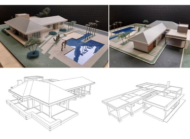 O projeto explora formas geométricas e volumes direcionados na orientação o sol, seu telhado é marcante com varias aguas proporcionando maior altura e proporção ao conjunto de varandas e grandes vãos.